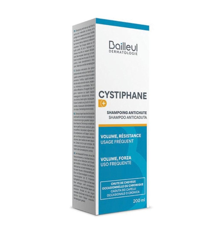 Shampoo delicato particolarmente indicato per la caduta dei capelli. Il precursore della cistina (acetilcisteina) aiuta a proteggere il bulbo pilifero dallo stress ossidativo. La vitamina B6 aiuta a rinforzare la fibra dei capelli. Con il suo contenuto in acido ialuronico, Cystiphane Shampoo Anticaduta aiuta a ridare morbidezza e vigore ai capelli.