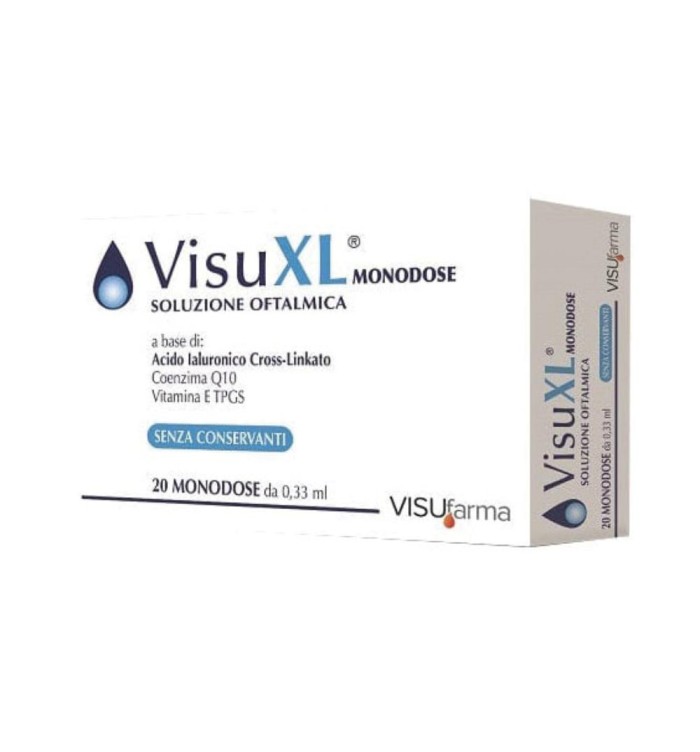 L’acido ialuronico cross-linkato è una forma di acido ialuronico più stabile ed efficace rispetto alla forma non stabilizzata che conferisce a VisuXL migliori proprietà viscoelastiche, mucomimetiche e idratanti ed una efficacia maggiore nel tempo.
